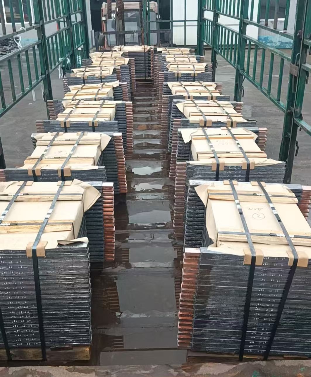 根據客戶要求定制 種類:鉛銀合金陽極板、鉛銀鈣鍶合金陽極板、鉛銻合金陽極板、鉛錫鈣鍶合金陽極板。 用途:濕法電解鋅、電解銅、電解鎳、電積銅、電解銅箔、電解鉻。 特點:良好的導電性,穩固的理化性,極板合金含量分布均勻,使用壽命長。